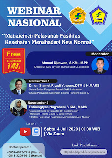 Download Materi, Info E-Sertifikat, dan Link Absensi Webinar “Manajemen Pelayanan Kesehatan Menghadapi New Normal”
