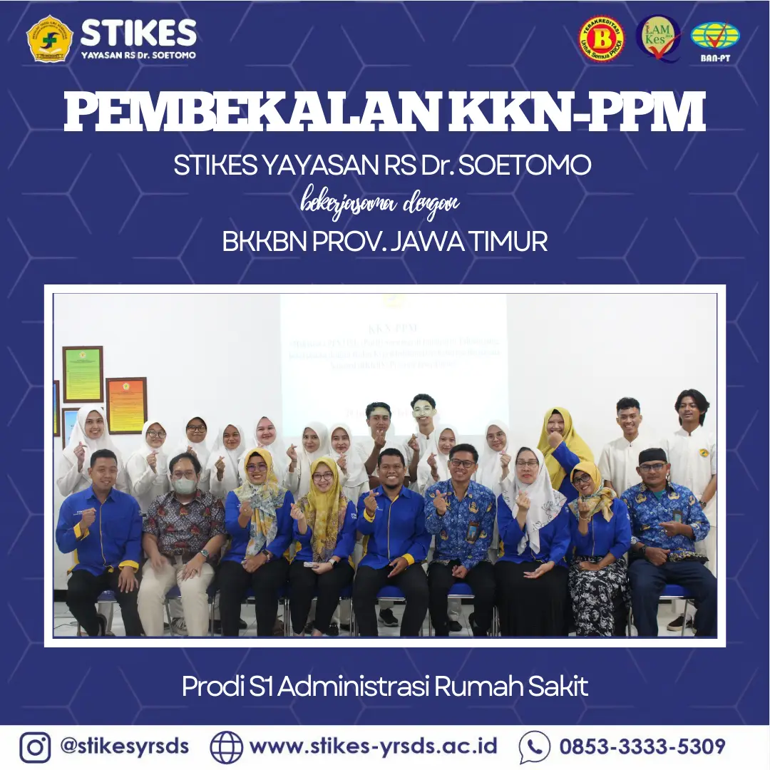 Kegiatan pembekalan ini menghadirkan nara sumber bapak Toma Afriandi, SH., M.Si. selaku Perwakilan BKKBN Prov. Jawa Timur, Bidang Pengendalian Pendudukakan. KKN-PPM berfokus pada program percepatan penurunan stunting dalam bentuk pendampingan mahasiswa dengan sasaran calon pengantin/remaja, ibu hamil, ibu menyusui, balita dan PKK atau pengelola Dahsyat di desa. Kegiatan ini juga sebagai bentuk dukungan Prodi S1 Administrasi Rumah Sakit STIKES YRSDS dalam mensukseskan program nasional pemerintah Indonesia untuk menurunkan prevalensi stunting sebesar 14% pada tahun 2024.
