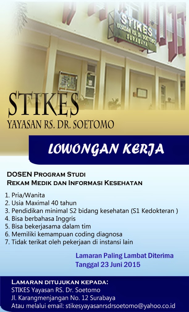 3. Lowongan Kerja Dosen Prodi RMIK STIKES Yayasan RS.Dr. Soetomo