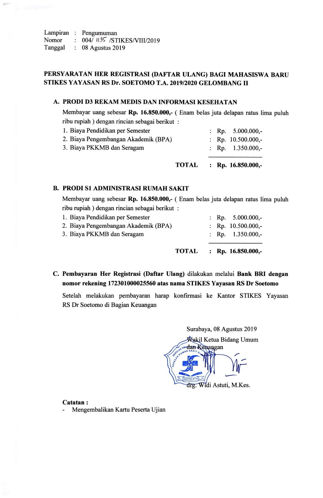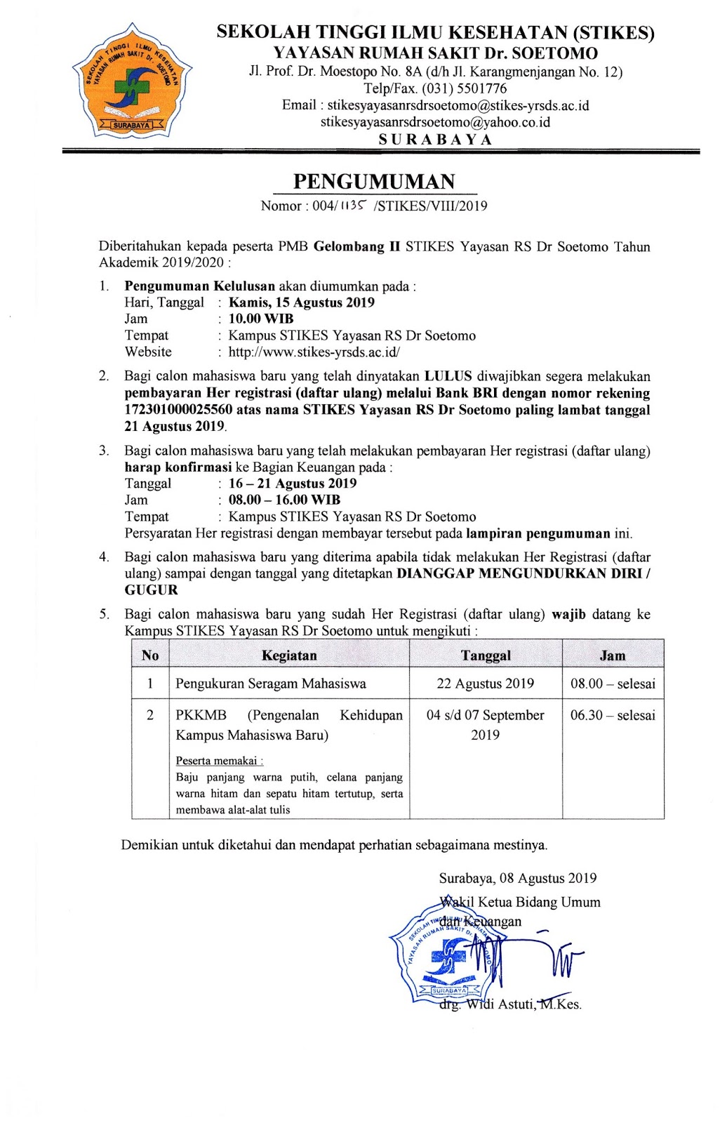 - Pengumuman Her-Registrasi Gelombang II Tahun 2019