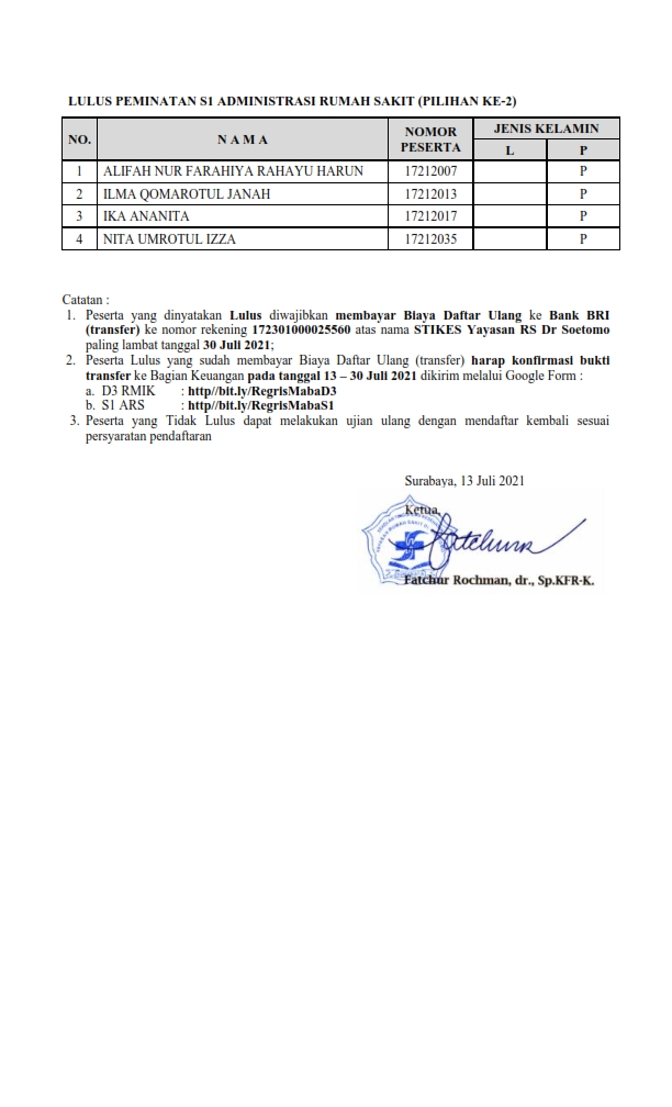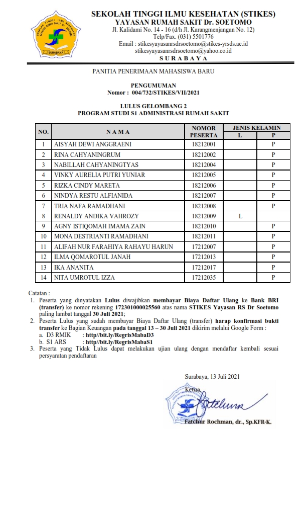 - Pengumuman Kelulusan PMB Gelombang 2 Tahun 2021