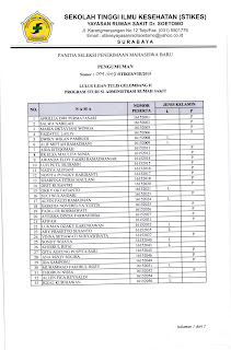 stikes 0 Comments PENGUMUMAN LULUS GELOMBANG 2 PROGRAM STUDI S1 ADMINISTRASI RUMAH SAKIT Berikut daftar nama calon mahasiswa baru yang lulus ujian tulis gelombang 2. Untuk lebih detilnya, file pdf bisa didownload disini Share Post :