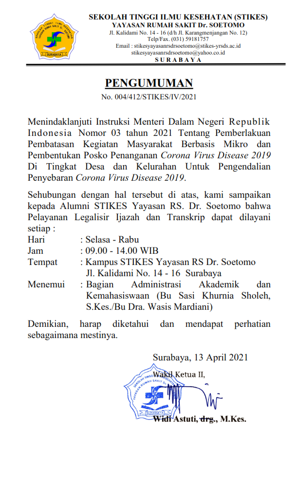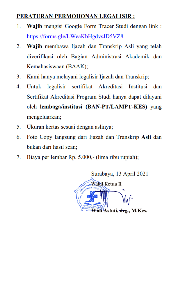 stikes 0 Comments Persyaratan Legalisir Ijazah dan Transkrip Diberitahukan kepada para alumni yang membutuhkan legalisir ijazah dan transkrip, harap memperhatikan persyaratan berikut Link pengisian tracer study di sini Share Post :