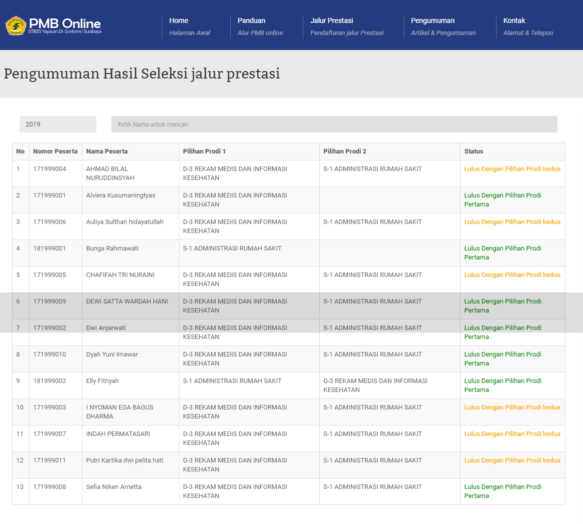 Bersama dengan ini kami sampaikan RALAT / PERBAIKAN Pengumuman Kelulusan PMB Online Gelombang I Tahap 2 pada Jalur Prestasi di laman https://pmb.stikes-yrsds.ac.id/ terhitung mulai tanggal 11 Juli 2019 pukul 15.30 WIB, terlampir screenshot pengumuman hasil seleksi jalur prestasi.