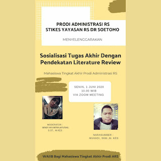 Prodi Administrasi Rumah Sakit STIKES Yayasan RS Dr Soetomo menyelenggarakan “Sosialisasi Tugas Akhir Dengan Pendekatan Literature Review”.
