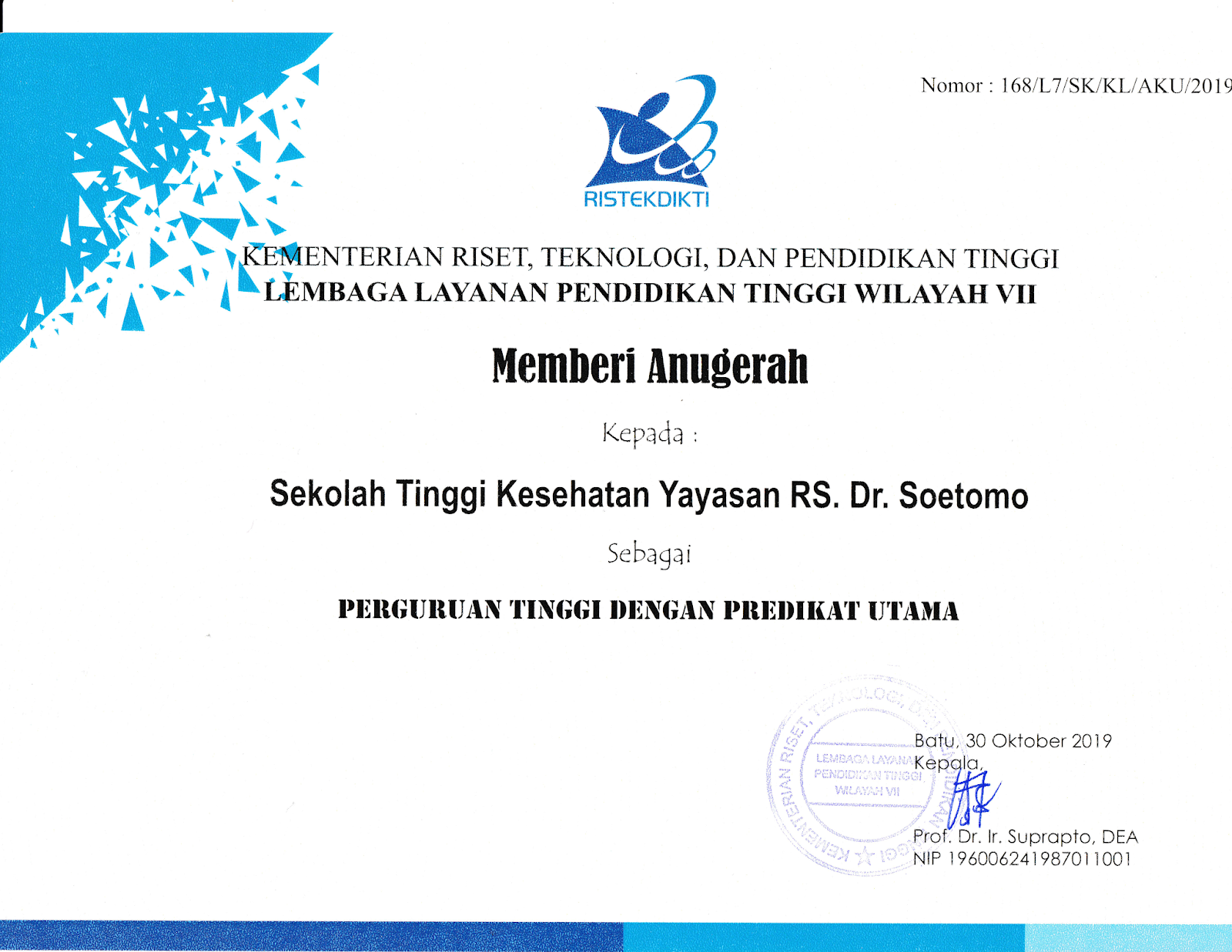 - STIKES Yayasan RS Dr. Soetomo Sebagai Perguruan Tinggi Dengan Predikat Utama