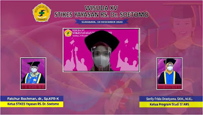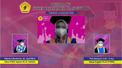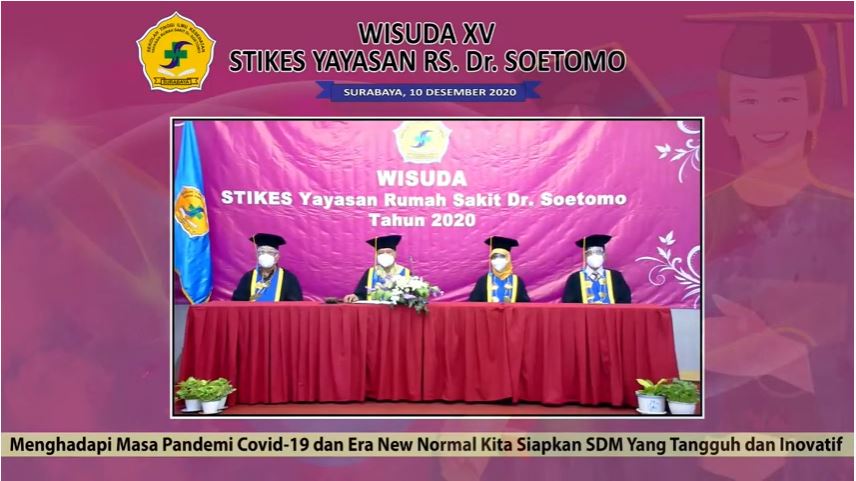 Pada hari Kamis tanggal 10 Desember 2020 telah dilaksanakan Wisuda STIKES Yayasan RS Dr. Soetomo ke XV. Dengan mengambil tema “Menghadapi Masa Pandemi Covid-19 dan Era New Normal, Kita Siapkan SDM Yang Tangguh dan Inovatif”, diharapkan wisudawan dapat menjadi manusia yang tangguh dan inovatif baik dalam dunia kerja maupun dalam masyarakat. Kegiatan yang diselenggarakan di Gedung AMEC Fakultas Kedokteran Universitas Airlangga ini mengukuhkan 157 wisudawan dari program studi D3 Rekam Medis dan Informasi Kesehatan serta program studi S1 Administrasi Rumah Sakit.